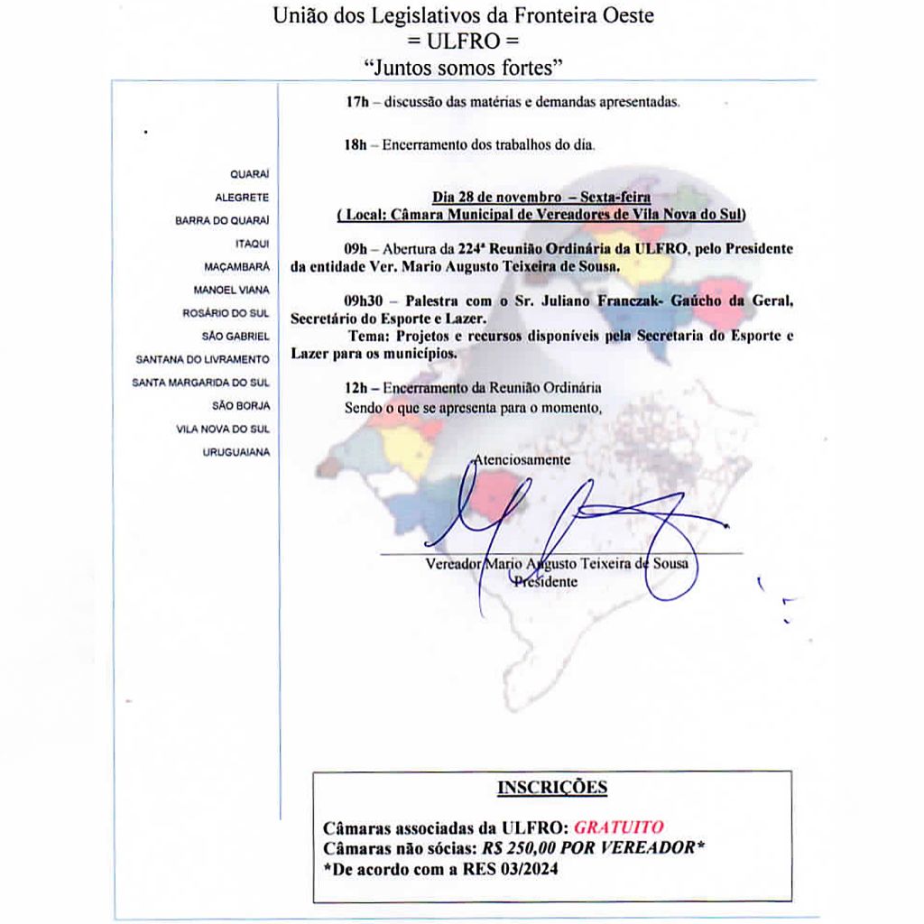 ️ Quem organiza: O Ver. Mario Augusto Teixeira de Sousa, Presidente da ULFRO, e o Ver. Leandro Silva Andrade, Presidente da Câmara de Vila Nova do Sul.