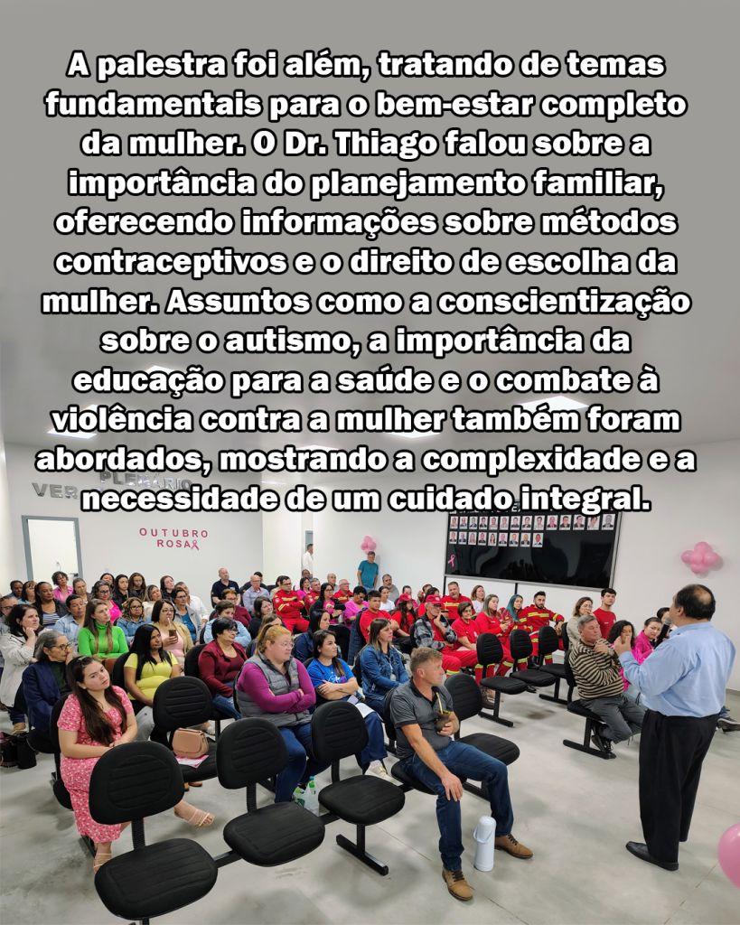 A conscientização foi muito além da prevenção! Nos próximos posts, confira a abordagem completa do Dr. Thiago Duarte sobre a Saúde da Mulher de forma integral: de Planejamento Familiar e inclusão (tema sobre autismo) a discussões cruciais sobre o combate à violência contra a mulher e a educação. Arraste para o lado e veja todos os detalhes.